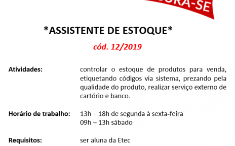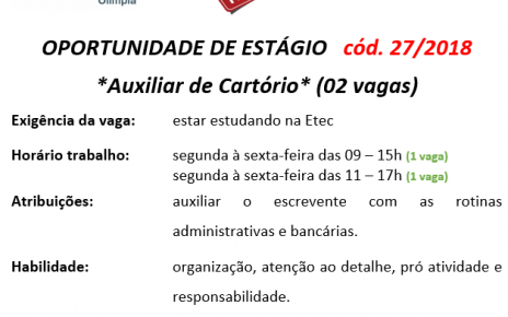 02 VAGAS DE ESTÁGIO – SOMENTE PARA ALUNOS DA ETEC