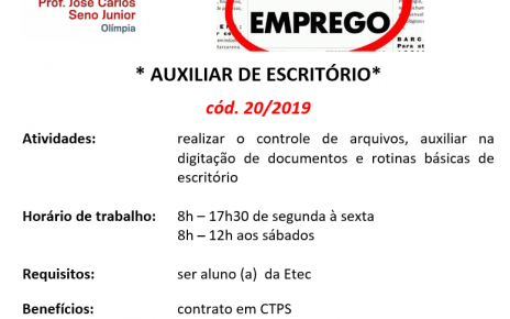 Atribuições:                    auxiliar com as rotinas administrativas.