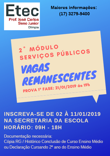Está aberto o processo de vagas remanescentes para o candidato que deseja ingressar no 2º módulo do Curso Técnico em Serviços Públicos.