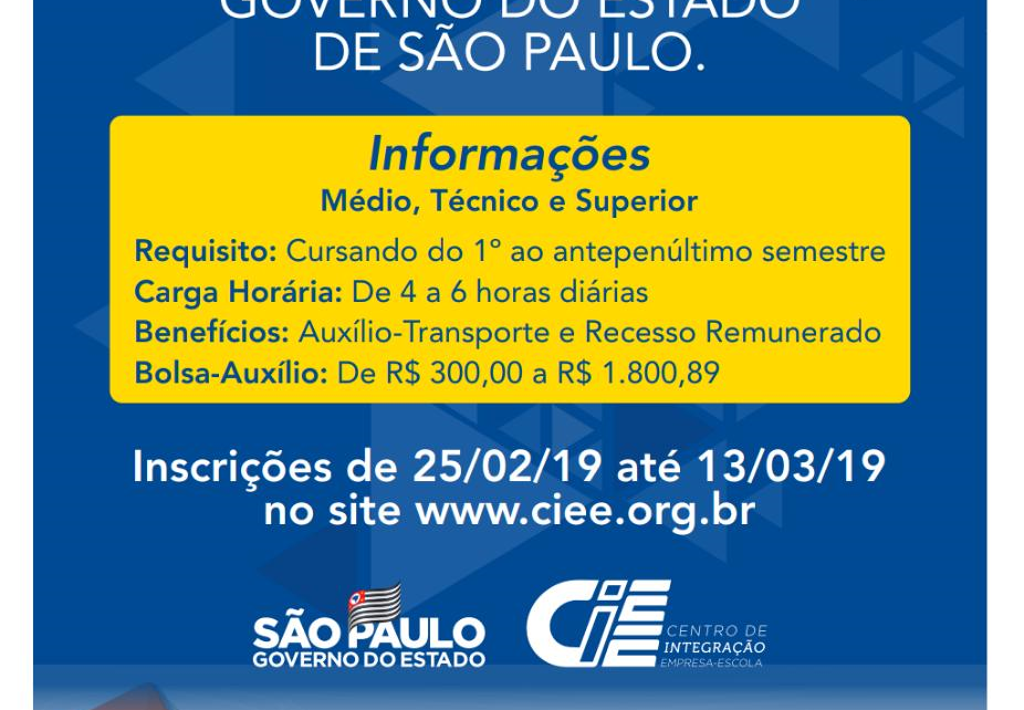 O processo destina-se ao preenchimento de vagas e formação de cadastro reserva para estágios remunerados em órgãos e entidades da administração pública do Estado de São Paulo.