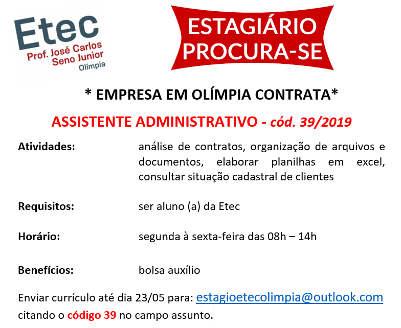 VAGA APRENDIZ – SOMENTE PARA ALUNOS DA ETEC