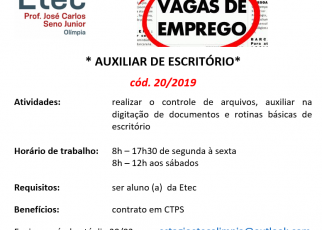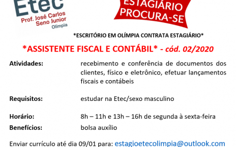 VAGA DE ESTÁGIO EM ESCRITÓRIO CONTÁBIL – SOMENTE PARA ALUNOS DA ETEC