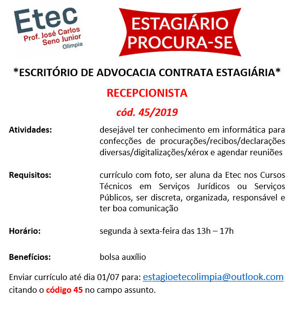 VAGA DE ESTÁGIO – TÉCNICO EM SERVIÇOS JURÍDICOS