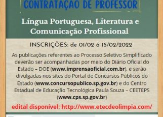 Compartilhe com seus amigosInscrições Vagas Remanescentes para as 2ª Série do Mtec em Administração (noturno), Desenvolvimento de Sistemas (noturno), Química (noturno e Integral). Inscrições de 06/01/2026 a 30/01/2026 na secretaria da Etec das 09h00 até 15h00DOCUMENTAÇÃO NECESSÁRIA: CÓPIA RG, CPF E DECLARAÇÃO DE MATRÍCULA NA 2ª SÉRIE DO ENSINO MÉDIOPROVA 1ª FASE: 06/02/2025 às 13h00 […]