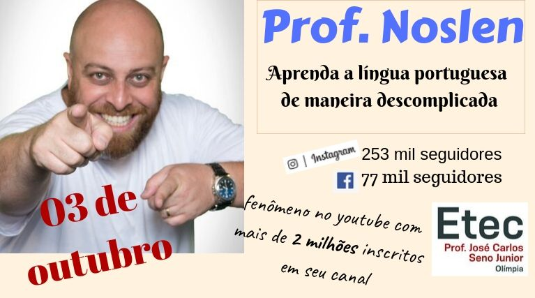 “Noslen é professor de Língua Portuguesa e Redação desde 2007. Natural de Curitiba, Paraná, “Nonô” – como é carinhosamente conhecido pelos fãs – é autor de vídeos lúdicos que, segundo ele, auxiliam o aluno a absorver as informações essenciais para o Enem.”