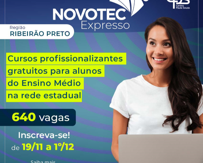 Estão abertas as inscrições para o curso de qualificação profissional do Novotec Expresso! É um programa da Secretaria Estadual de Desenvolvimento Econômico (SDE) e do Centro Paula Souza (CPS).