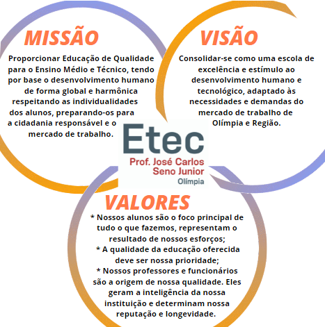 A Etec de Olímpia acredita na importância da sua MISSÃO, pensando sempre nos seus beneficiários (alunos, pais, equipe e comunidade).