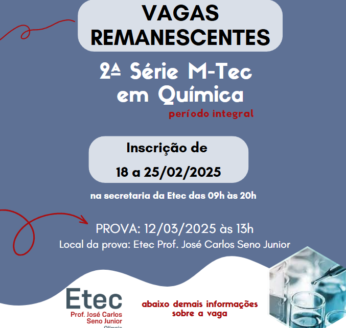 Vagas Remanescentes – 2ª Série M-Tec em Química – Período Integral