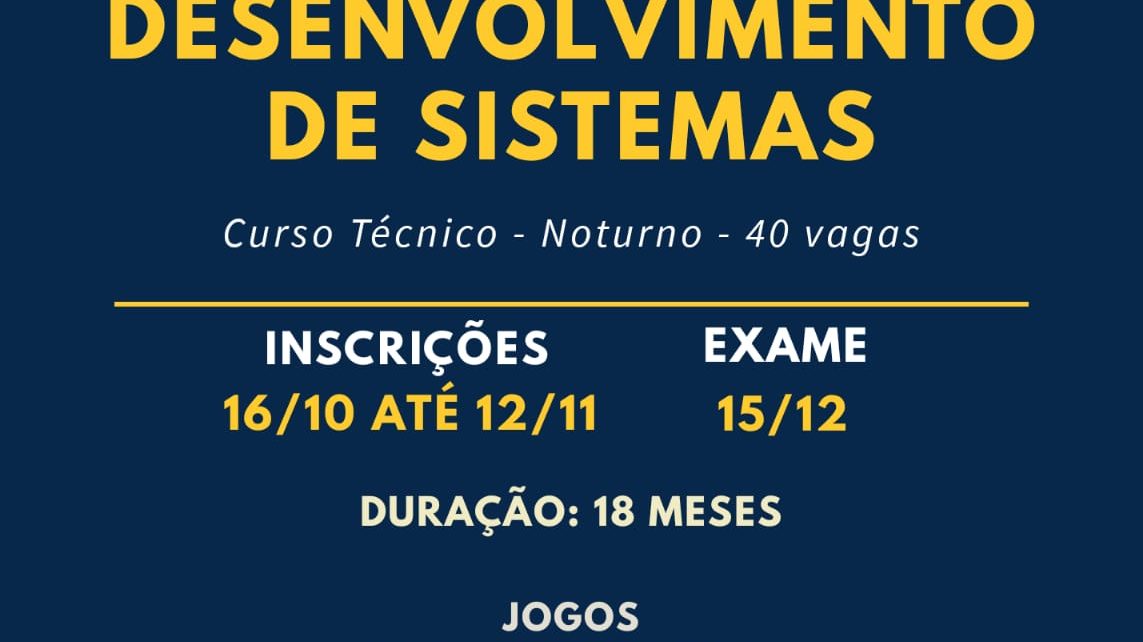 DESENVOLVIMENTODE SISTEMAS (diurno e noturno) – inscriçõesabertas
