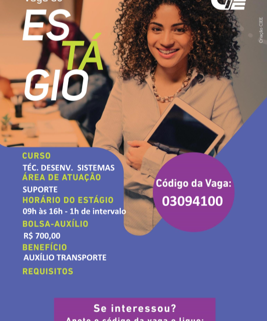 Curso Técnico em Desenvolvimento de Sistemas (Informática) – período integral e noturno Inscrições: até as 15 horas do dia 12/11/2018. MAIS INFORMAÇÕES E INSCRIÇÃO NO SITE: http://www.vestibulinhoetec.com.br/