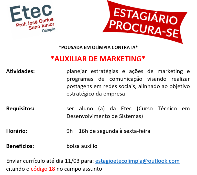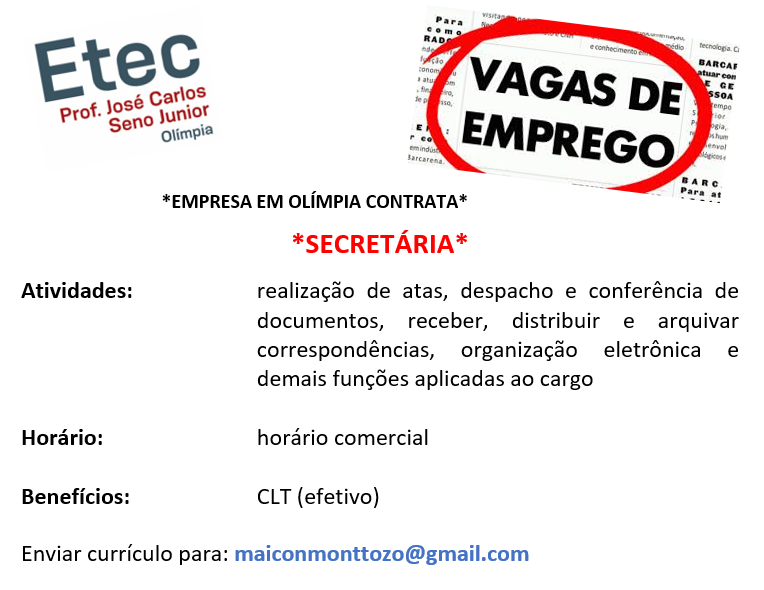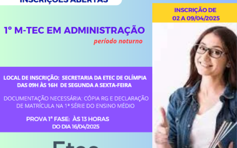 DECAR: (17) 99751-2123 – 10% de desconto, baixe o aplicativo e aproveite! http://bit.ly/decarpassageiroandroid GP CAR: (17) 99661-8687 – 10% de desconto, baixe o aplicativo, insira o código promocional: ETEC e aproveite! https://meuapp.mobi/gpcar/ A Etec de Olímpia estabeleceu cooperação com empresas para dar desconto aos alunos, professores e funcionários. Basta apresentar a Carteira de Identificação da […]