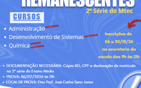Os benefícios gerados pelas parcerias firmadas entre Etec e empresas do comércio local, garantem aos alunos, professores e funcionários vantagens econômicas na aquisição de produtos das lojas conveniadas. Para ter direito ao desconto, devem apresentar a carteira de identificação da escola ou identidade funcional, dentro do prazo de validade. Segue relação das empresas: ACG IDIOMAS, […]