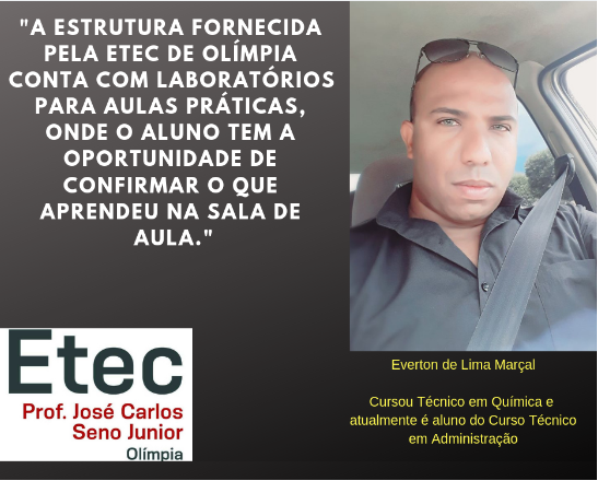 Meu nome é Everton de Lima Marçal, trabalho no ramo de fertilizantes químicos há quase 14 anos, o Curso Técnico em Química me ajudou muito a entender dúvidas que tinha nos processos e nas reações químicas, pois conhecia a prática, mas não a teoria. A estrutura fornecida pela Etec de Olímpia é ótima, conta com […]