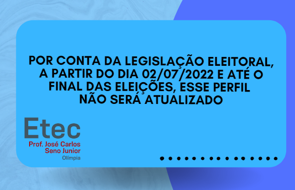 Em atendimento à legislação eleitoral , este perfil não será atualizado a partir de 02 de julho de 2022 até o final da eleição estadual em São Paulo.